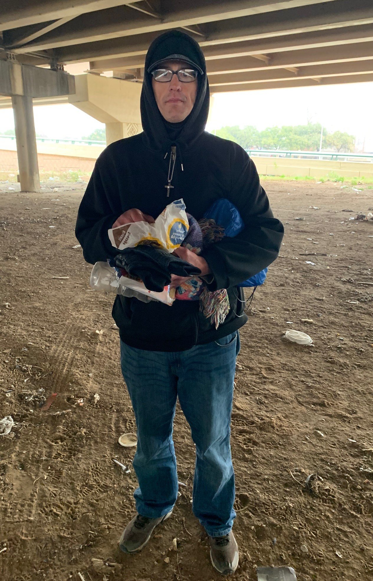 Bobby age 47: currently living under this bridge, says he’s made mistakes and needs God to move in his life. He very much appreciated a tent, sleeping bag, and other supplies.