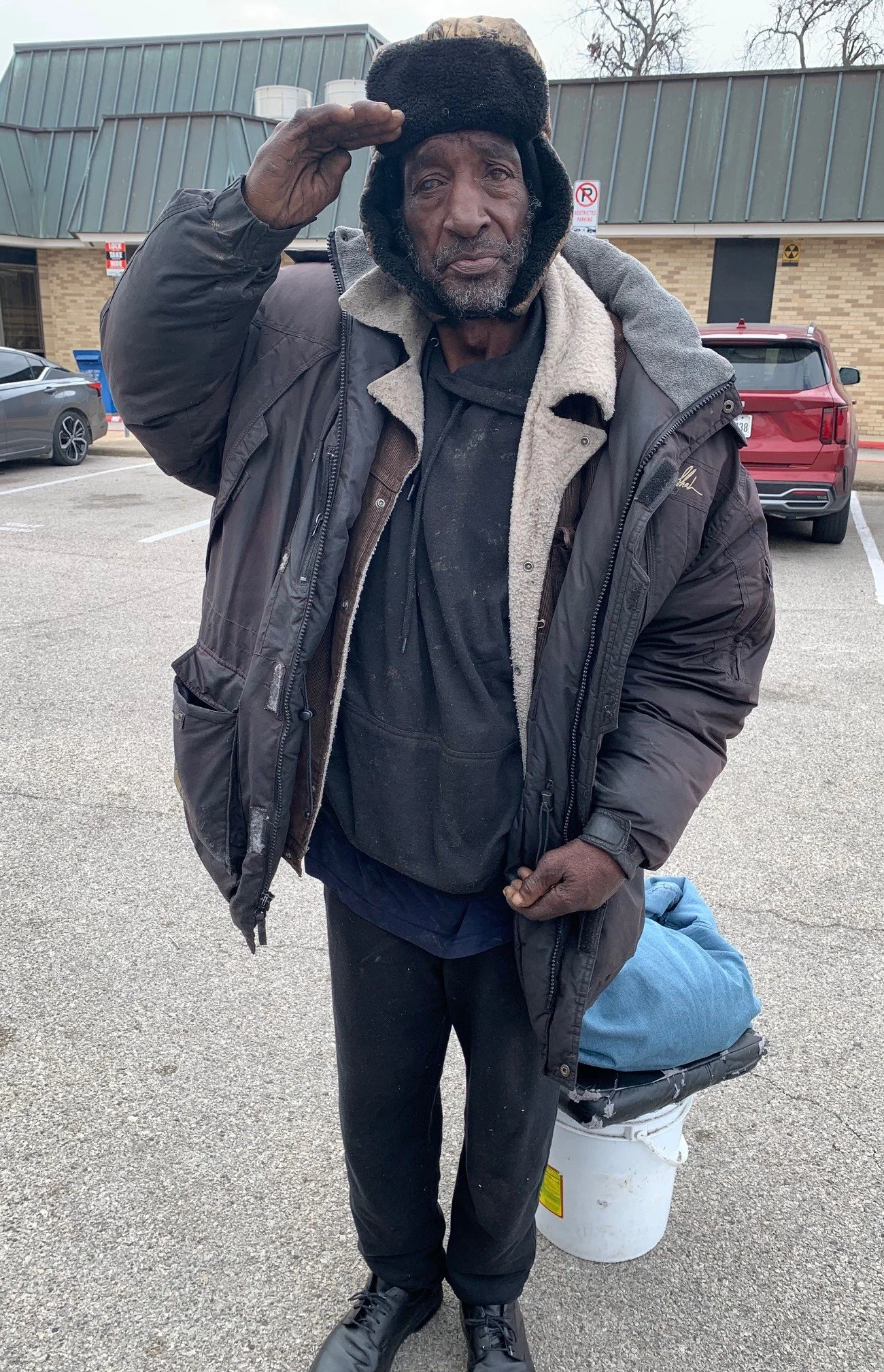 U.S. Army veteran Kenny, age 69, salutes us for our efforts.