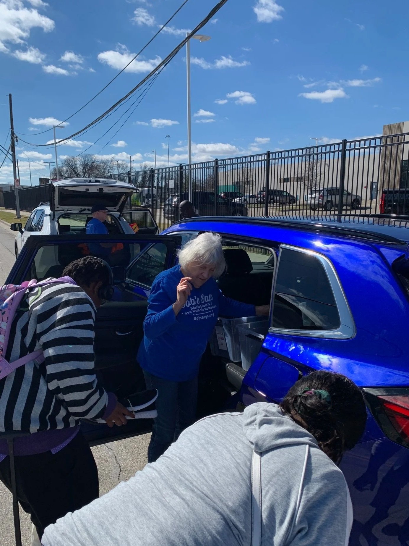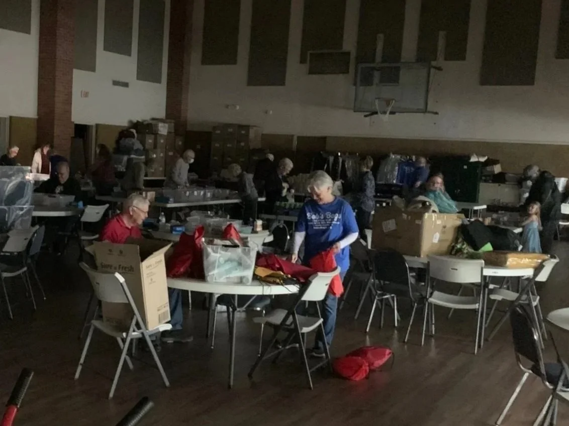 a dedicated group of volunteers meeting the day before an outreach to assemble bags and gather clothing for the next day’s event. On this morning, we had a huge rainstorm, but 18 faithful volunteers still showed up, some were soaked just getting in the door.